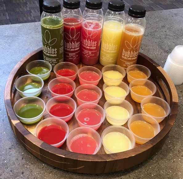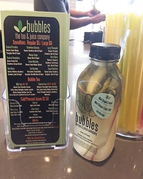 Bubbles has quickly become a well known and quickly expanding tea and juice destination in Columbus. Just take a look at that eye-catching logo. Hand crafted and thoughtfully designed, Bubbles offers a variety of Organic Cold-Pressed Juices, Whole Fruit Smoothies, Bubble Teas, and Açaí Bowls. The quality of the ingredients are a very important part of the recipes. Their knowledgeable, friendly and eager team members are there to help you decide the best flavor profile for your tastebuds that day. Whether you are just grabbing one of their creative teas or smoothies, or if you are looking for a healthy quick bite to eat, you’re going to walk away refreshed and happy with whatever amazing creation you choose.