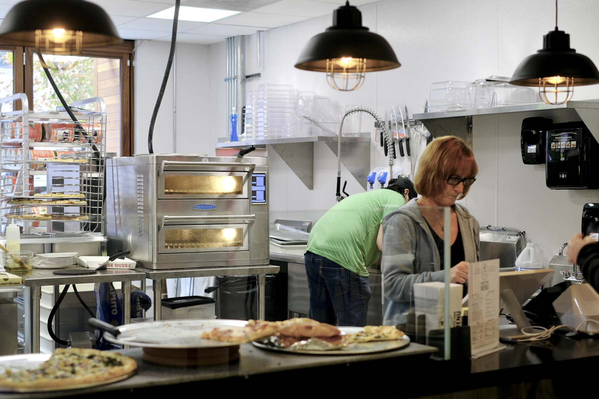 The North Market setting allows Gallo’s Pizzeria to serve not just as a quick stop, but as a casual, family-friendly hub. A standout feature is the “Nanawall”—a large, foldable glass door system. This architectural element allows Gallo’s to seamlessly connect the indoor Market House with the outdoor patio area. This means customers can easily grab their delicious, well-constructed 18-inch pizzas from inside the market or directly from the outdoor counter, offering a versatile dining experience. This integration allows the team to be a daily part of a broader, exciting food hall atmosphere, catering to a diverse flow of market visitors and the surrounding Bridge Park community with ease and convenience.